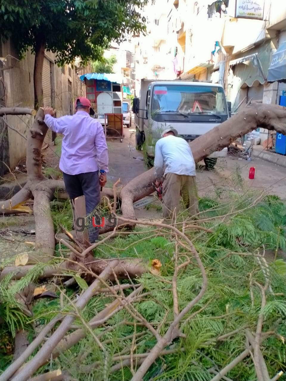 وتابع اللواء علاء يوسف رئيس الحي قيام إدارة الحدائق بالحي بمحاولات رفع شجرة ضخمة بشارع اليعقوبى بمحرم بك، نتيجة العوامل الجوية الحالية ، دون حدوث إصابات