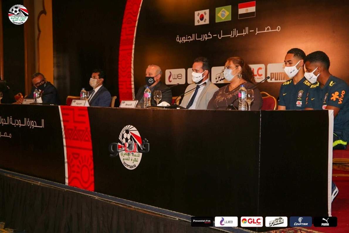 حضر المؤتمر عمرو الجناينى رئيس اللجنة الخماسية المكلفة بإدارة الاتحاد المصرى لكرة القدم، الكابتن شوقى غريب المدير الفنى للمنتخب الأوليمبى، الكابتن ناصر ماهر كابتن المنتخب الأوليمبى، ريكاردو ليما -سكرتير أول رئيس الاتحاد البرازيلى ورئيس البعثة، ورودريجو لاعب ريال مدريد ومنتخب البرازيل، وكيم هاجوم المدير الفنى لمنتخب كوريا، واللاعب كيم دايون لاعب منتخب كوريا.
