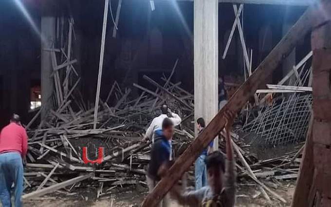 انهيار سقف مسجد على العمال أثناء صبه في الشرقية | صور
