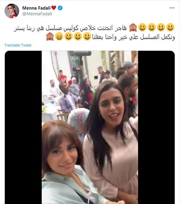 وكتبت منة فصالي تغريدة على تويتر "هاجر اتجننت خلاص كوليس مسلسل هي ربنا يستر ونكمل المسلسل على خير واحنا بعقلنا".