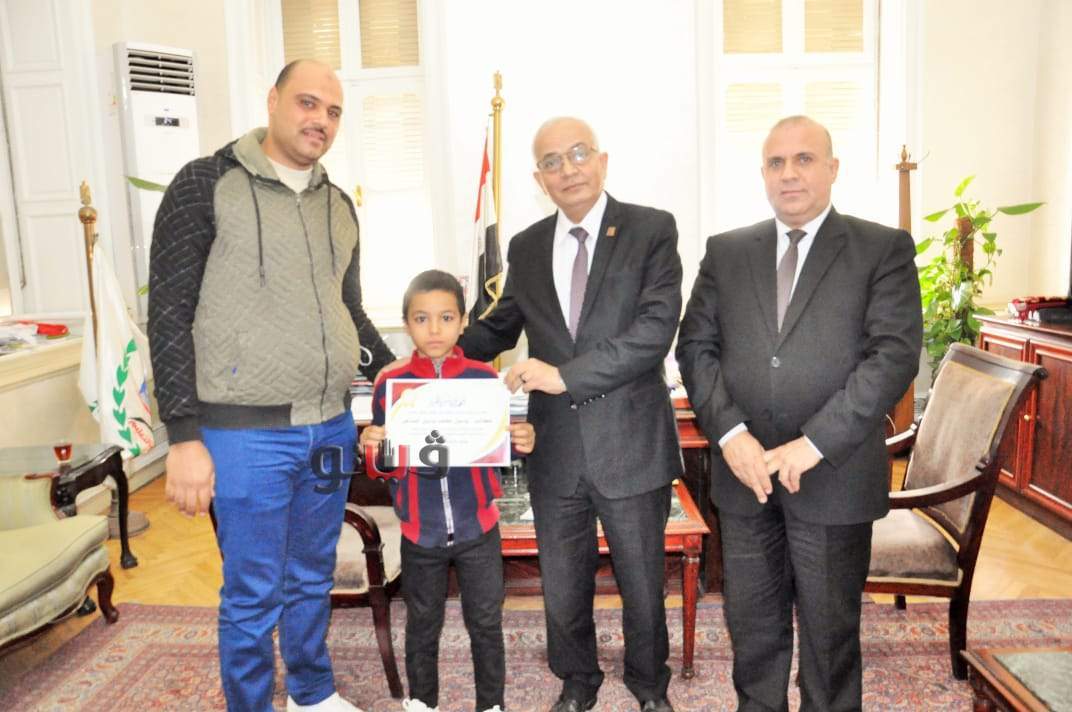 "حجازي" يكرم طالباً بالابتدائية لأمانته في رد حقيبة مفقودة داخلها 17 ألف جنيه