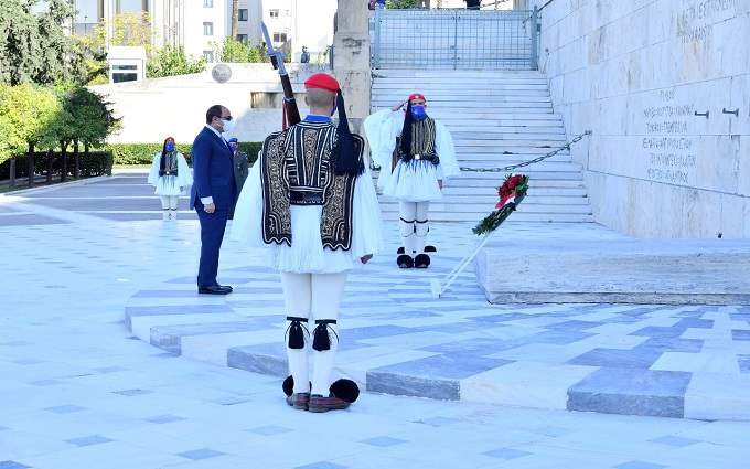 التقى الرئيس عبد الفتاح السيسي اليوم مع الرئيسة اليونانية كاترينا ساكيللاروبولو، وذلك في إطار الزيارة الرسمية للرئيس إلى اليونان، حيث أقيمت مراسم الاستقبال الرسمي وتم استعراض حرس الشرف وعزف السلامين الوطنيين.