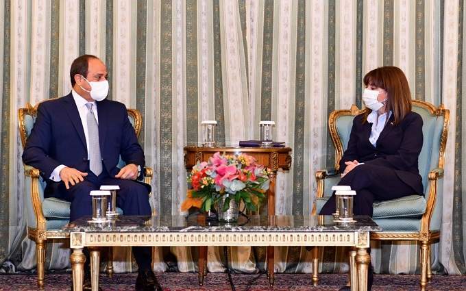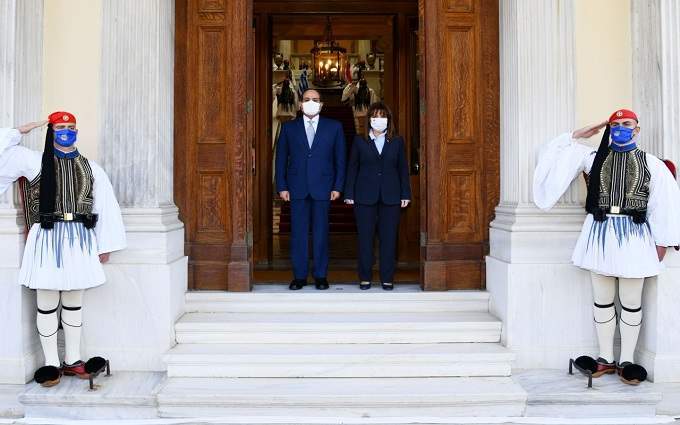 وقال السفير بسام راضي، المتحدث الرسمي باسم رئاسة الجمهورية، إن الرئيس أجرى مباحثات موسعة مع الرئيسة اليونانية، بحضور وفدي البلدين، حيث أعرب الرئيس فى مستهلها عن تقدير مصر لحفاوة الاستقبال اليوناني، مشيداً بعلاقات الصداقة المصرية اليونانية المتينة والممتدة، وما بلغته من مستوى متقدم على مختلف الأصعدة خلال الفترة الأخيرة، ومعرباً عن تطلع مصر لتعميقها وتعزيزها، لا سيما على المستويين الاقتصادي والتجاري من خلال تعظيم حجم الاستثمارات اليونانية في مصر، وقد قدم الرئيس الدعوة لرئيسة اليونان لزيارة مصر.