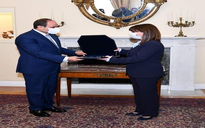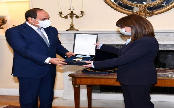 كما قلدت رئيسة اليونان الرئيس عبد الفتاح السيسي، أعلى وأقدم وسام لدى اليونان، كما منحها الرئيس وسام قلادة النيل العظمى.