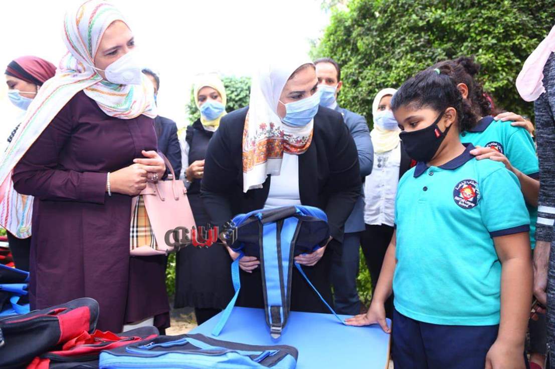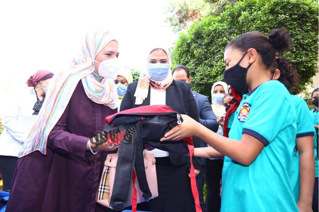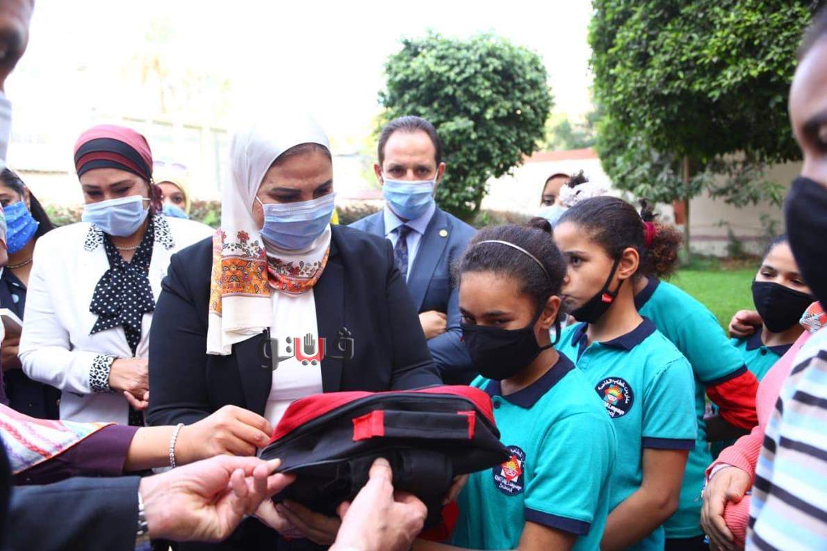 وزيرة التضامن تسلم فتيات مؤسسة العجوزة الحقائب والكتب المدرسية