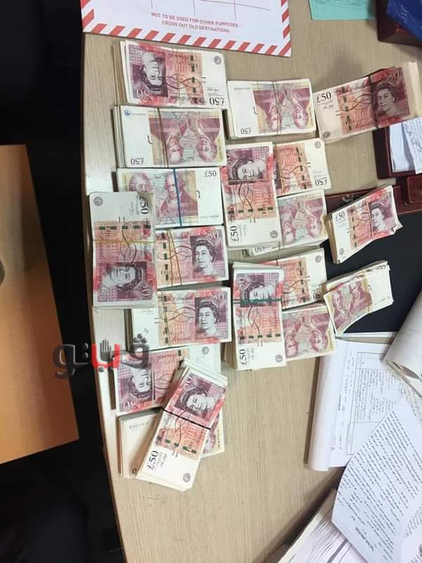 ضبط ١٠٢ الف جنيه استرليني بحوزة راكب في مطار القاهرة.. صور