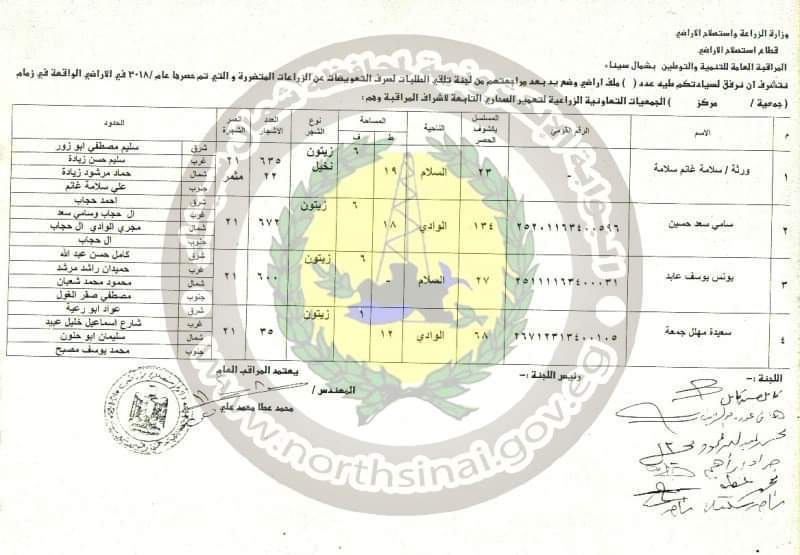 وأوضحت محافظة شمال سيناء أن المزارعين تم مراجعة ملفاتهم من لجنة فحص الملفات للطعن عليهم بمديرية الزراعة لمدة 15 يوما من تاريخ 8 نوفمبر 2020 إلى 22 نوفمبر 2020 ، ونشرت المحافظة كشوف بالأسماء