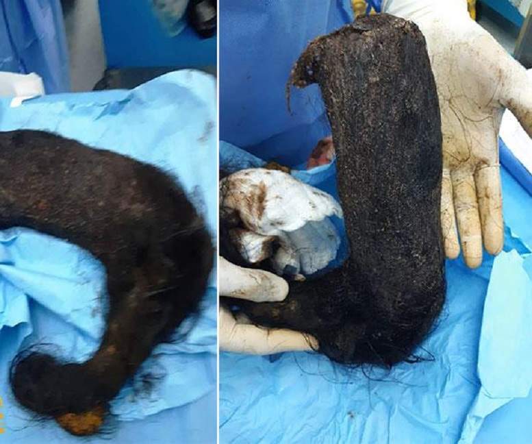 وأشارت مصادر طبية بالمستشفى إلى أن الحالة تعد من الحالات النادرة، التي تعود لحالة نفسية ترغم المريض على أكل الشعر لسنوات طويلة.