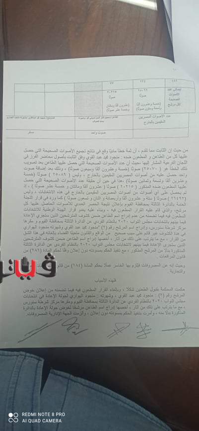ومن بين الطعون المقدمة؛ طعن واحد في إحدى دوائر محافظة الجيزة، و5 طعون في البحيرة، و7 طعون في الإسكندرية، وطعنان في قنا، ومثلهما في الفيوم وأسوان، و3 طعون في البحر الأحمر، وطعن واحد في الأقصر، وطعن واحد من مطروح، و5 طعون في سوهاج، و3 طعون في بني سويف، و4 طعون في أسيوط.