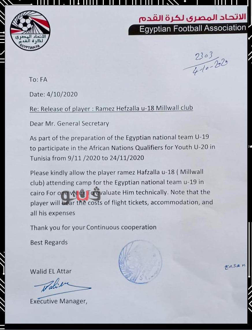 وقال ربيع ياسين المدير الفني للمنتخب، إن مسئولى اتحاد الكرة، خاطب نادي ميلوال الإنجليزي في 4 أكتوبر الماضي بطلب منه ، لضم اللاعب رامز حفظ الله، لمعسكر شباب الفراعنة خلال المرحلة المقبلة.
