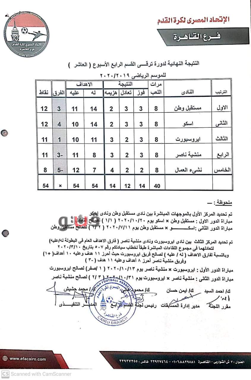 جدول الترتيب النهائي لترقي القسم الرابع بالقاهرة