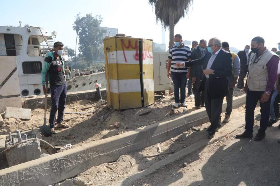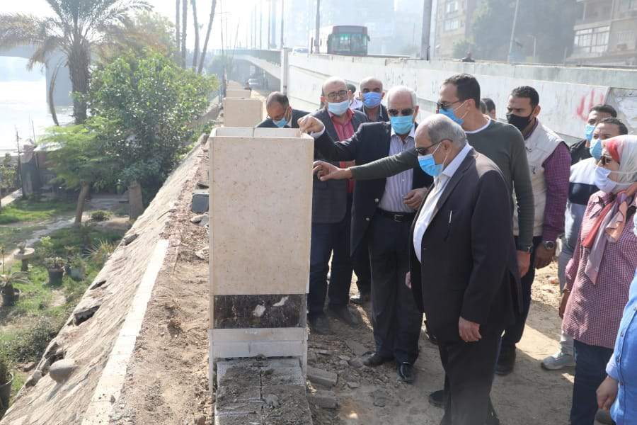 وحرص المحافظ على متابعة أعمال وضع القواعد الخرسانية الخاصة بأعمدة الإنارة الديكورية بشارع النيل والتنسيق العام للشارع والجزيرة الوسطى مشدداً على مراعاة المناسيب القياسية والالتزام بالمواصفات والجدول الزمنى المحدد للأعمال موجها بضرورة إزالة الحشائش وأي مواد قابلة للاشتعال حفاظا ع السلامة العامة ورفع المخلفات وكل ما يسيء للمظهر العام للطريق .