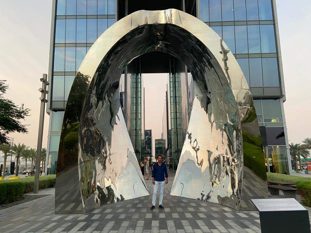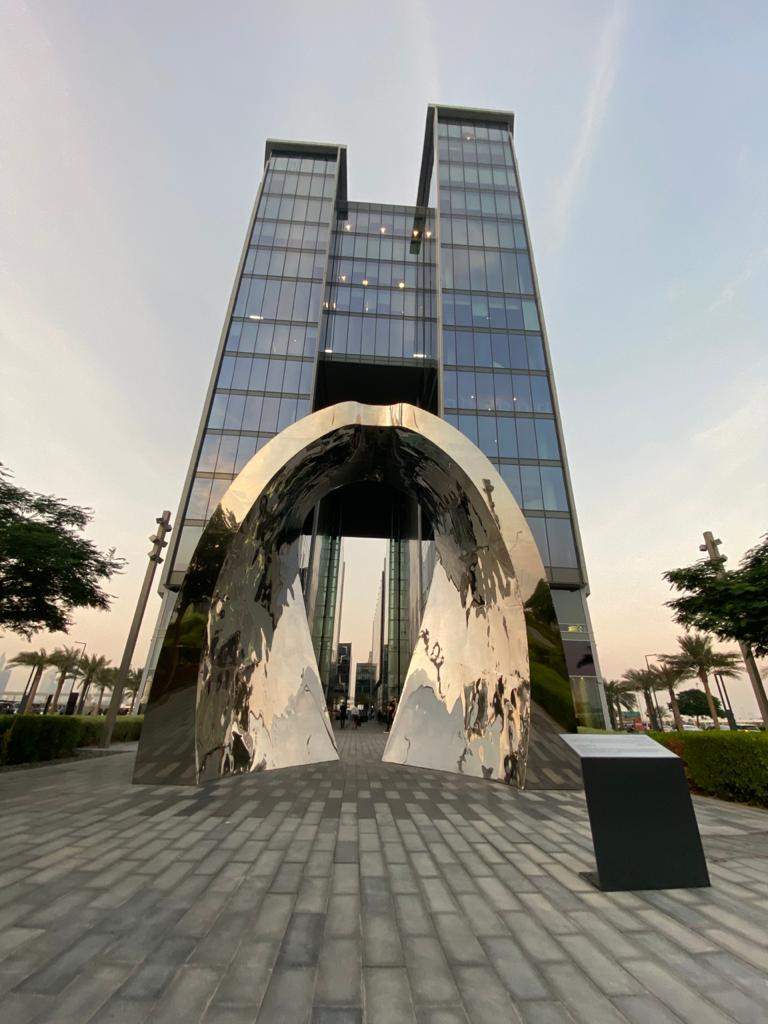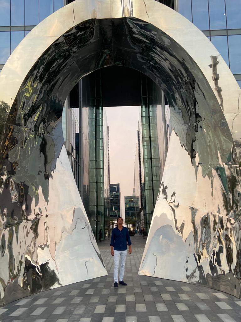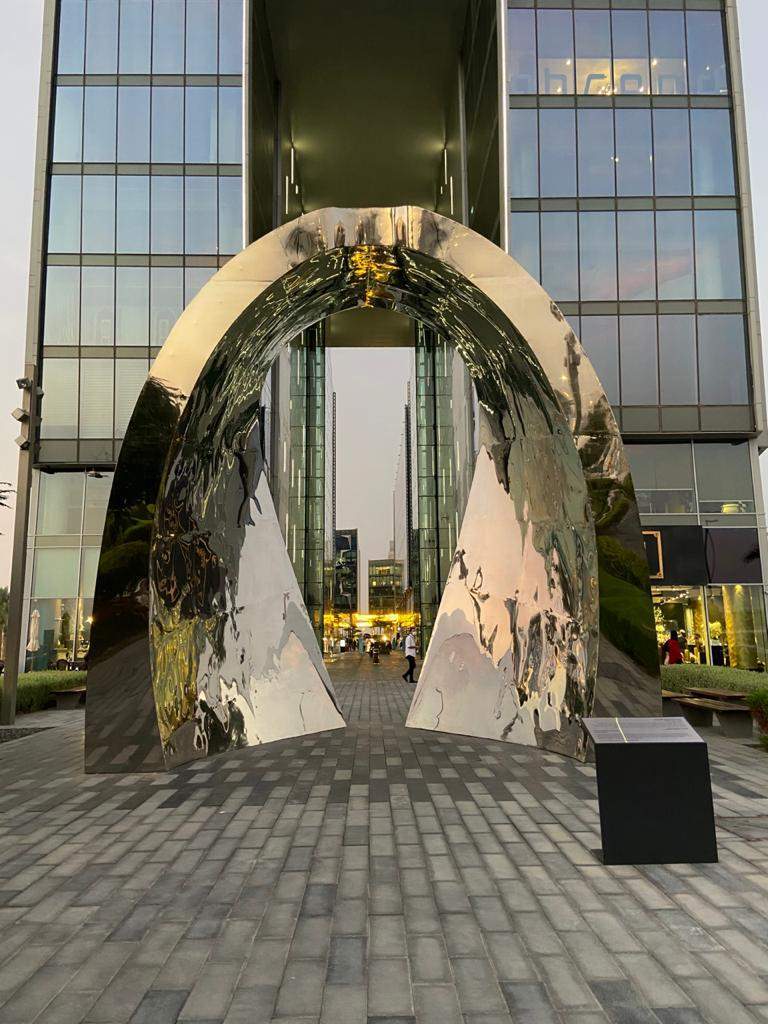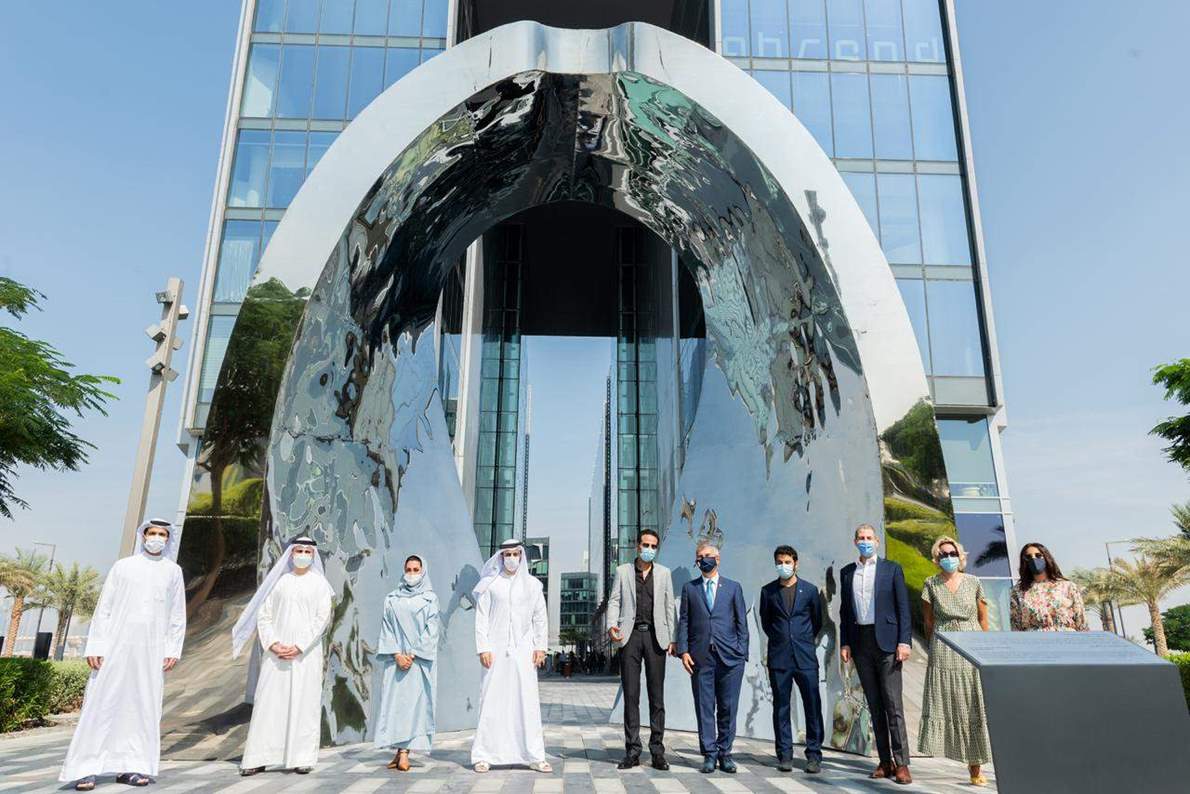 العمل الفني يعبر عن التقاء حضارات الشرق والغرب، وعرض أمام المبنى رقم 1 في حي دبي للتصميم.