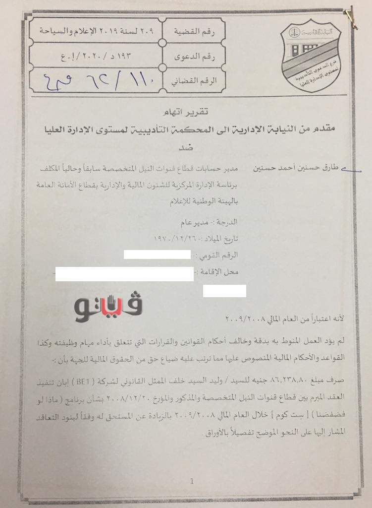 رصدت تحقيقات النيابة الإدارية للإعلام في القضية رقم 110 لسنة 62 قضائية عليا وقائع فساد مالي وإداري من العيار الثقيل ارتكبت داخل أروقة وجدران قطاع قنوات النيل المتخصصة ترتب عليها تسهيل الاستيلاء على أموال ماسبيرو خلال الفترة ما بين عام 2009 حتى 2019، وأحيل على إثرها مدير حسابات القطاع السابق وحاليًا رئيس الشئون المالية في قطاع الأمانة العامة بالهيئة الوطنية للإعلام للمحاكمة العاجل.