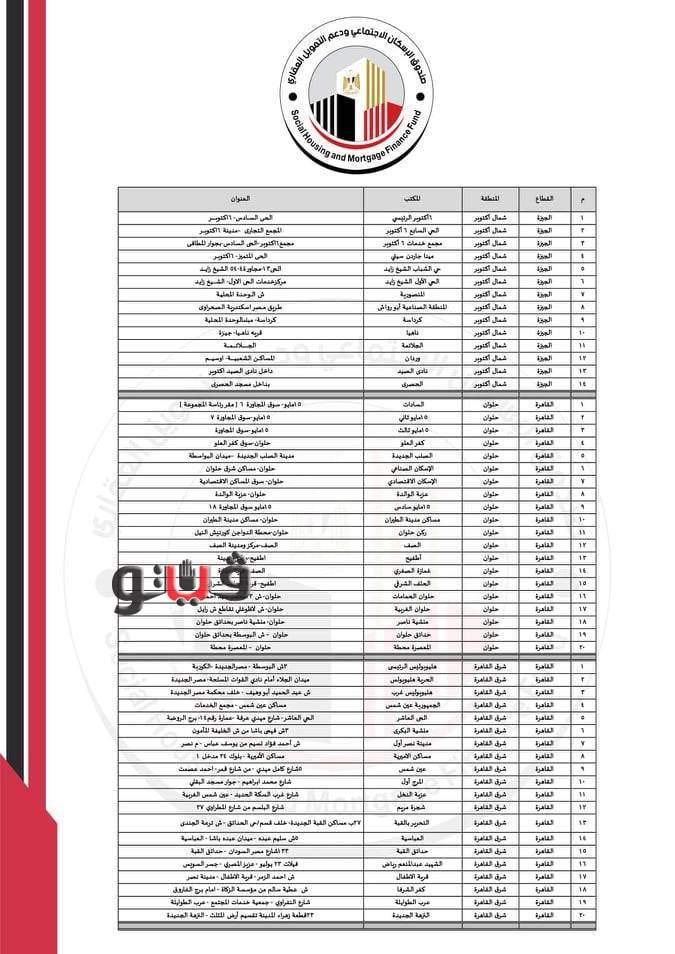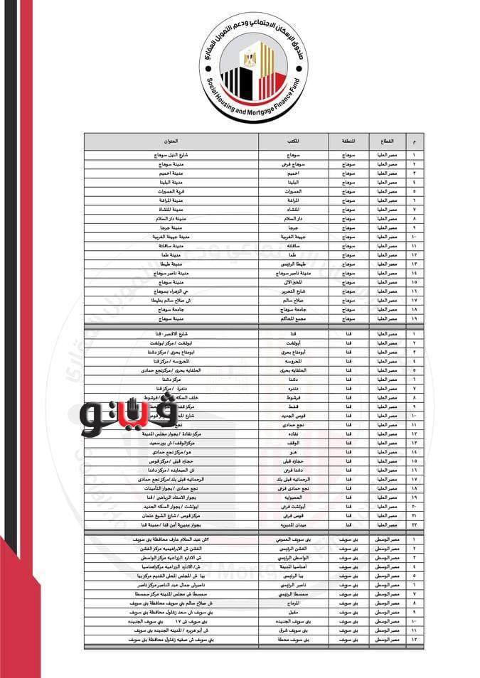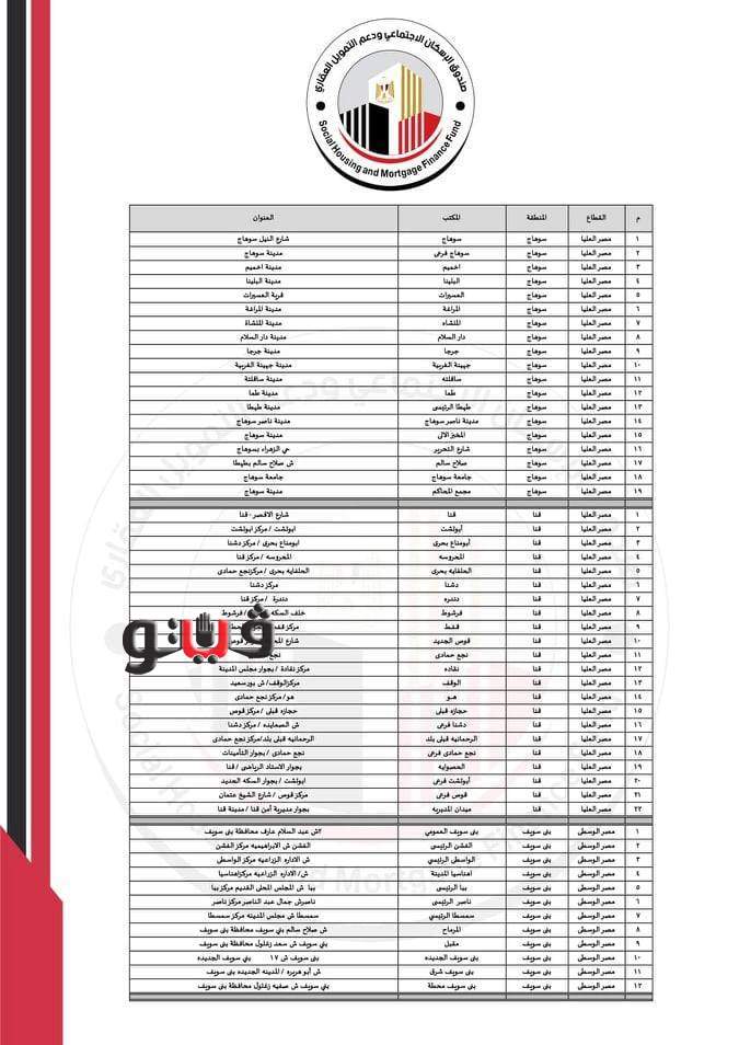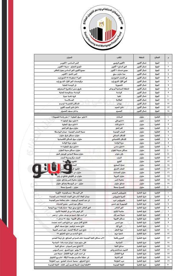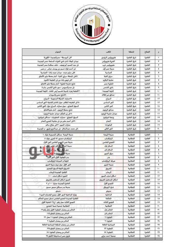 وتطرح الوزارة الإسكان ممثلة فى صندوق الاسكان الاجتماعى والتمويل العقارى 25 ألف وحدة سكنية كاملة التشطيب لمتوسطى الدخل، بـ10 مدن جديدة (بدر "حدائق العاصمة" – حدائق أكتوبر – 6 أكتوبر – 15 مايو – العاشر من رمضان – العلمين الجديدة – المنيا الجديدة – ناصر "غرب أسيوط" – رشيد الجديدة – أسوان الجديدة).