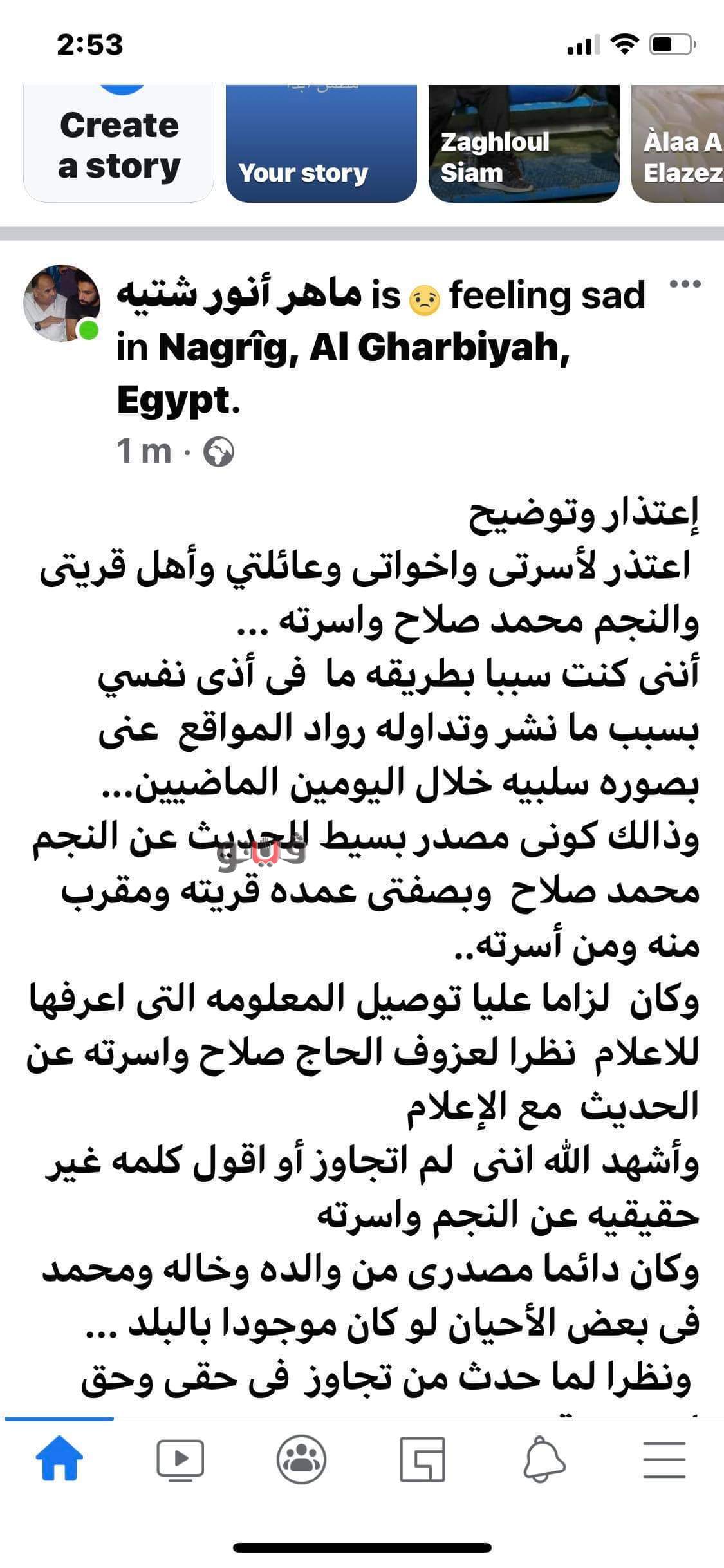 عمدة نجريج يعتذر لمحمد صلاح وعائلته