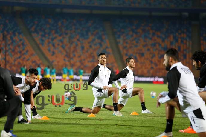 لاعبو المنتخب يجرون عمليات الإحماء قبل لقاء توجو | صور