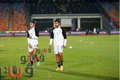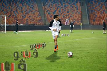 الوطني عمليات الإحماء على أرضية ستاد القاهرة الدولي، قبل مواجهة توجو ضمن