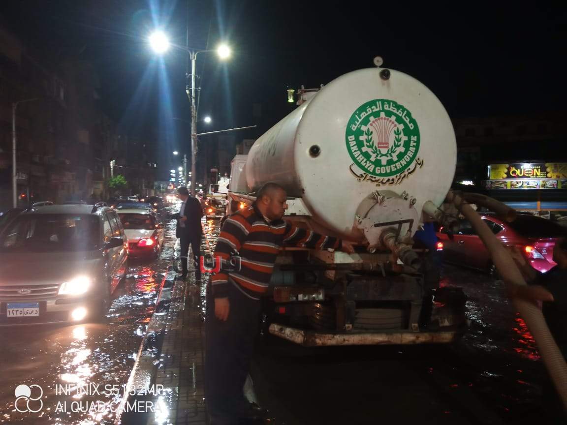 رفع تجمعات مياه الأمطار في المنصورة | فيديو وصور