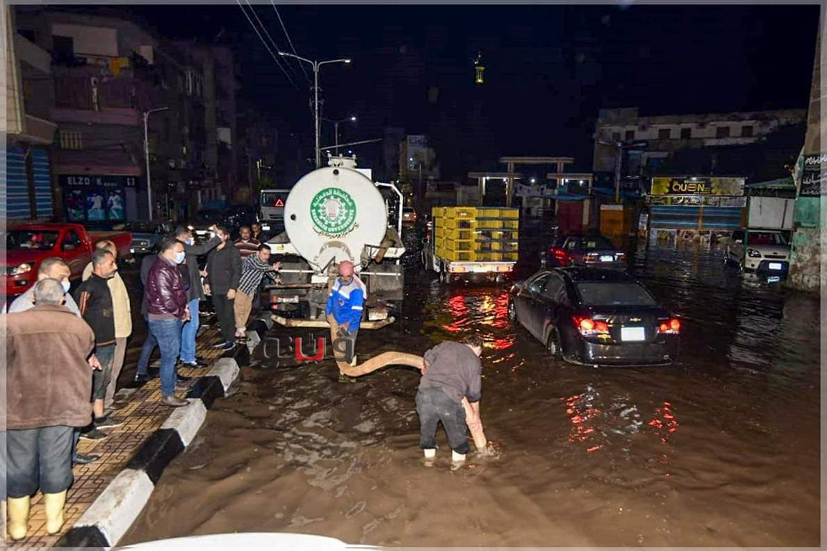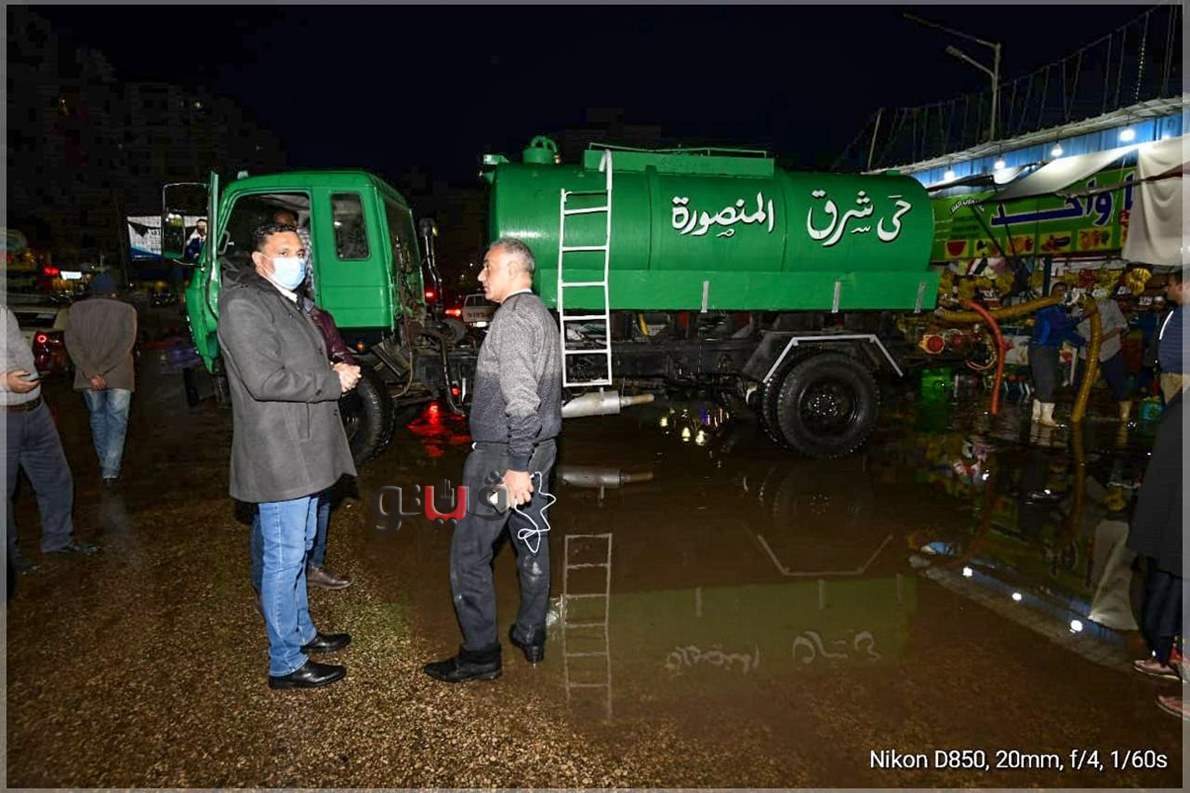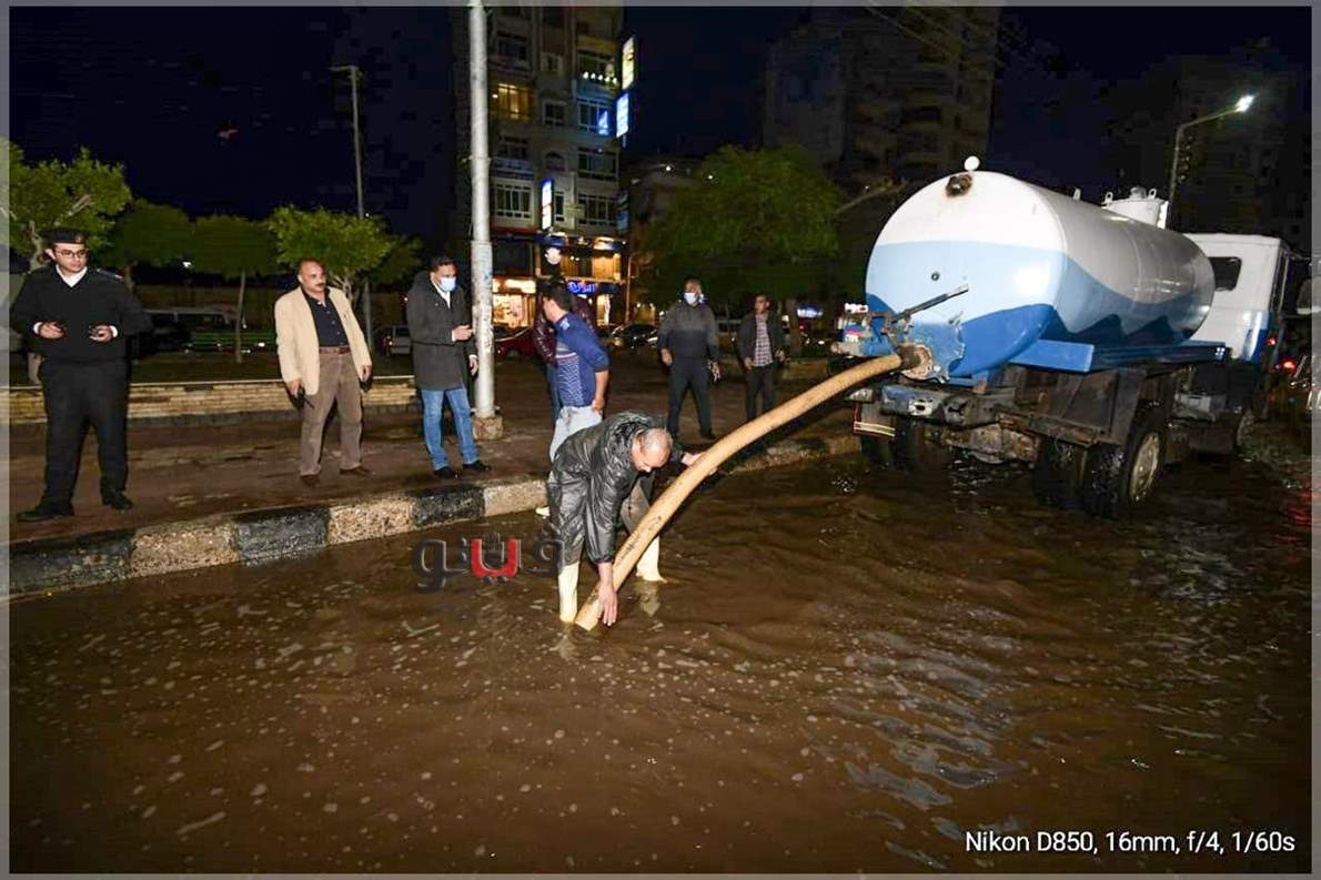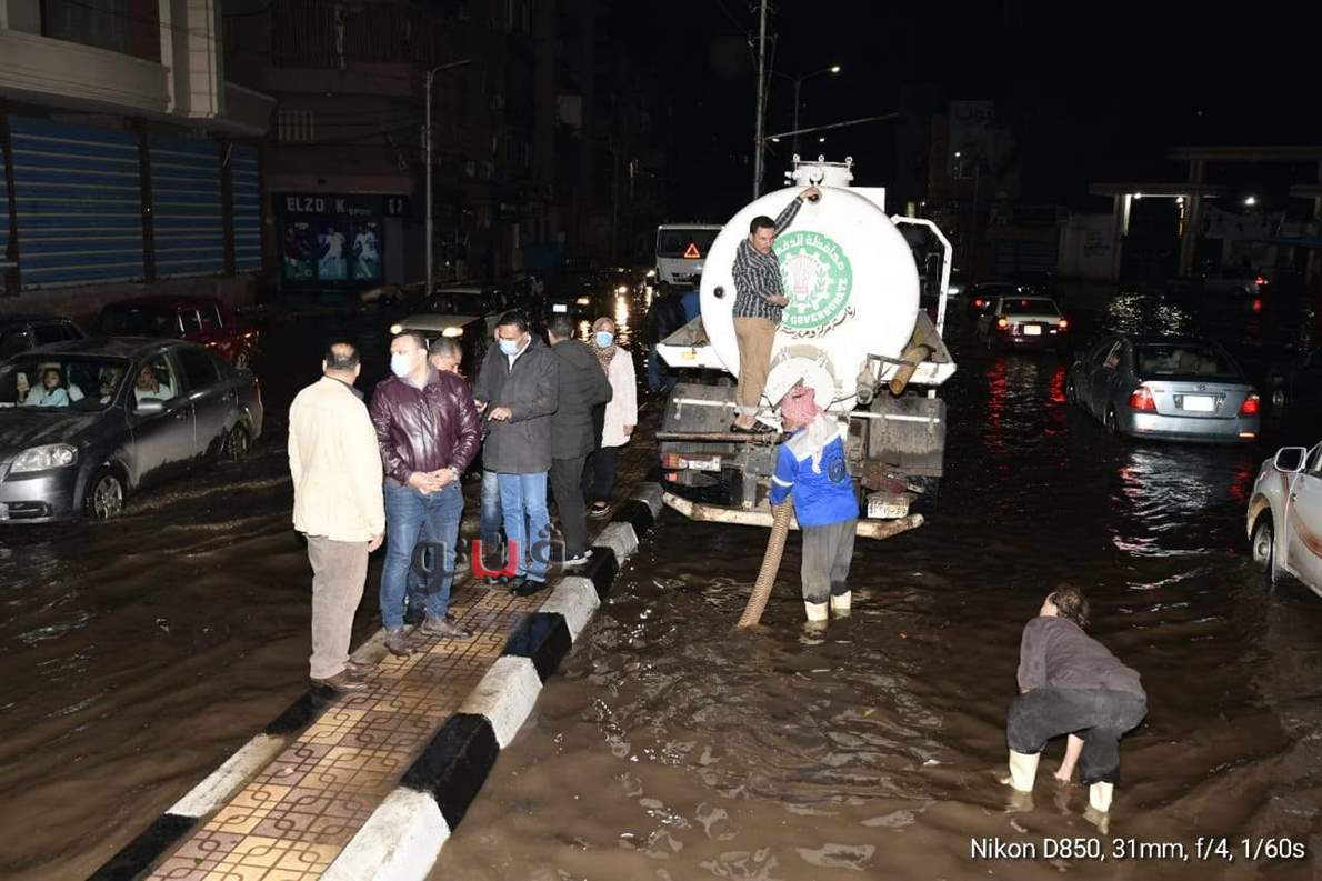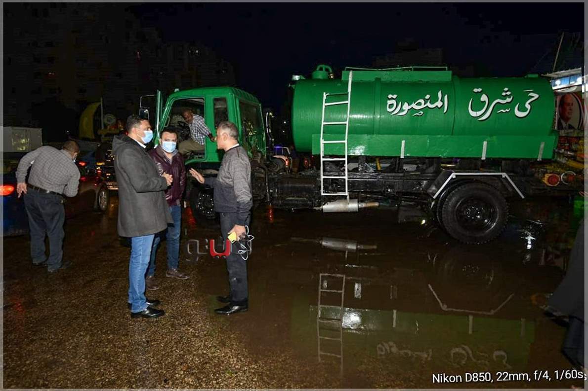 20 صورة ترصد عمليات رفع مياه الأمطار من شوارع المنصورة