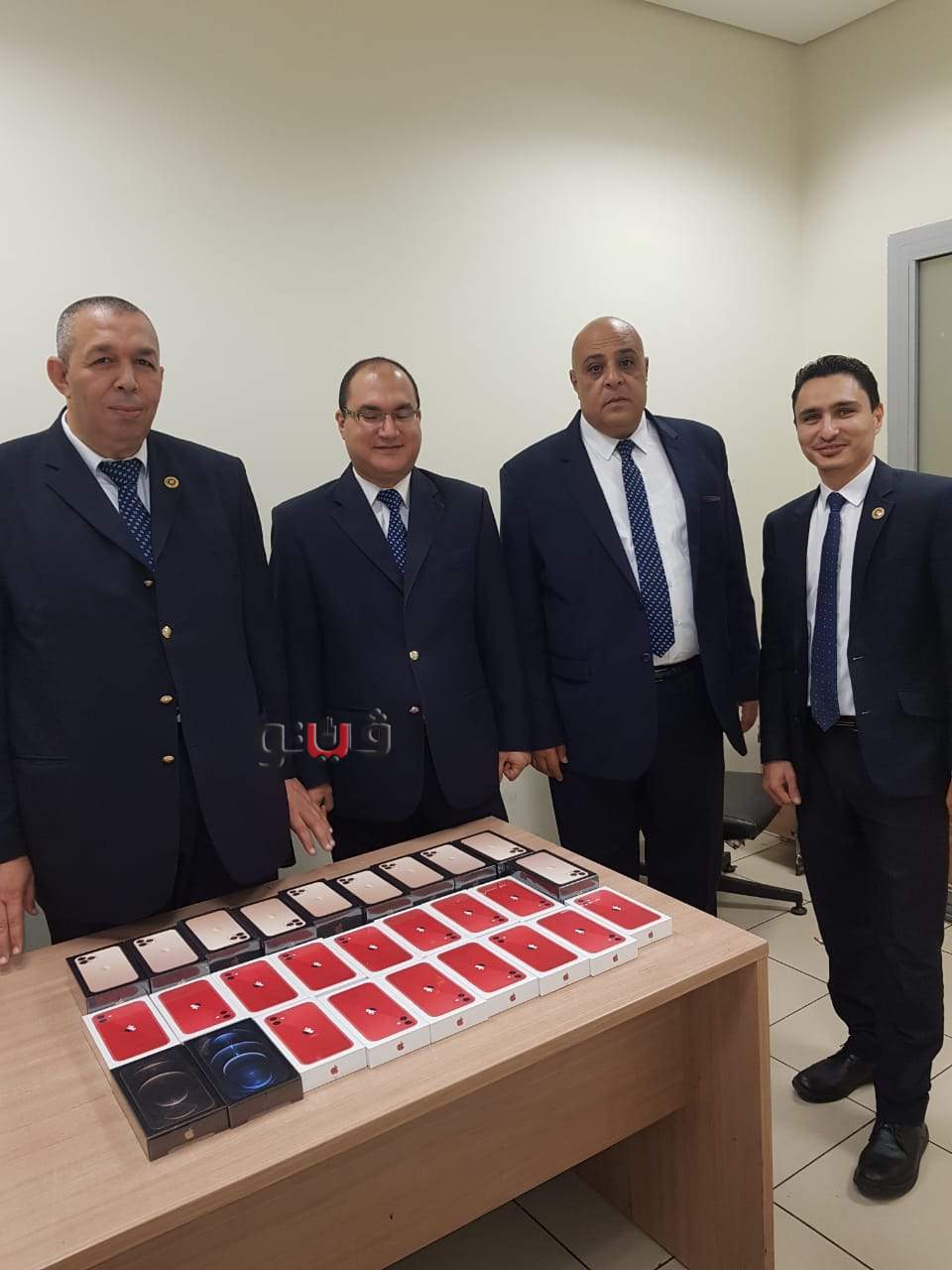 وأضافت المصادر أنه تم تمرير حقائبه على جهاز الفحص بأشعة " X-RAY " تحت اشراف عماد حمدي مأمور الجمرك، وتلاحظ وجود عبوات تكرارية متماثلة داخل الحقائب، وكلف رأفت وهيب مدير الجمرك، محمد دهشان مأمور الجمرك بتفتيش حقائب الراكب يدويا تحت اشراف هاني ابو طالب مدير الحركة المشرف علي صالة الوصول بمبنى الركاب رقم 2، وعثر علي 27 هاتف محمول من ماركة "iPhone". مخبأة بين طيات ملابسه