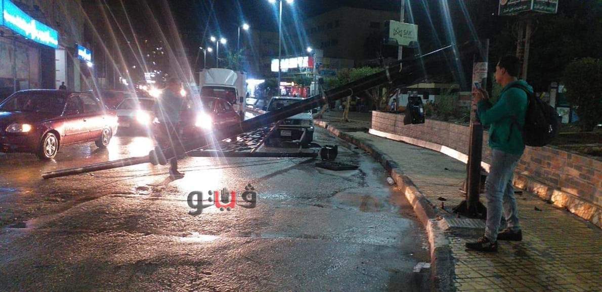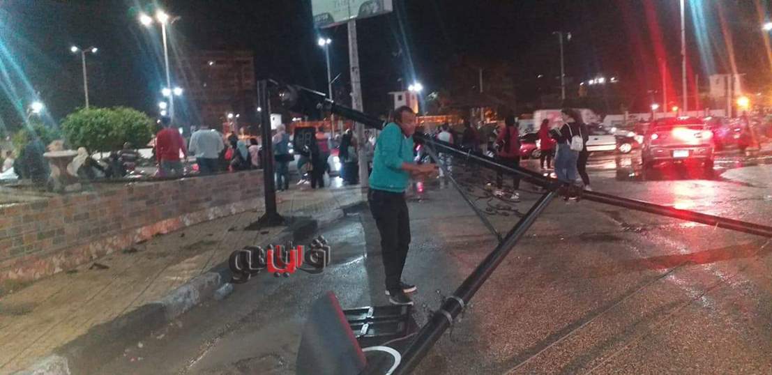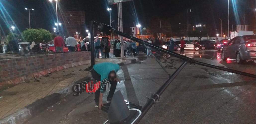 زحام بمدخل المنصورة بعد سقوط إشارة مرور بسبب الرياح | صور