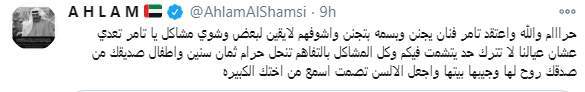 وكتبت أحلام: «حرااام والله واعتقد تامر فنان يجنن وبسمه بتجنن واشوفهم لايقين لبعض وشوي مشاكل يا تامر تعدي عشان عيالنا».