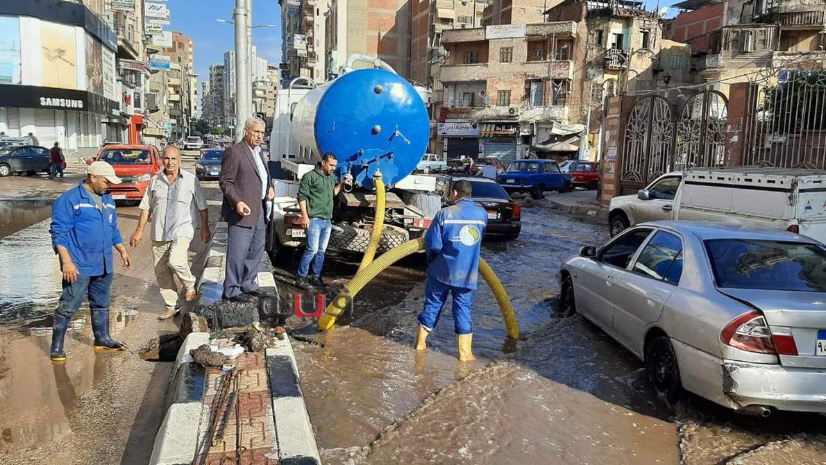 ومن جانبه تابع المهندس خالد حسين نصر، رئيس مجلس الإدارة والعضو المنتدب؛ أعمال سحب مياه الأمطار بشارعي بورسعيد وسكة سندوب.