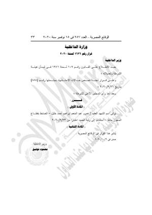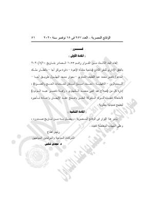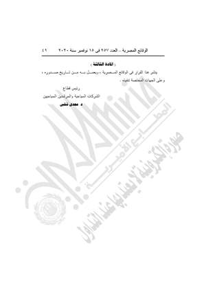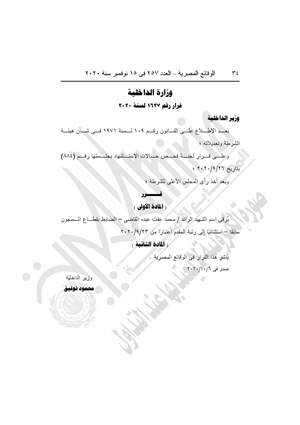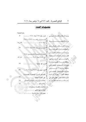 نشرت جريدة الوقائع المصرية في عددها رقم 257، الصادر في 15 نوفمبر 2020، عدًدا من القرارات .