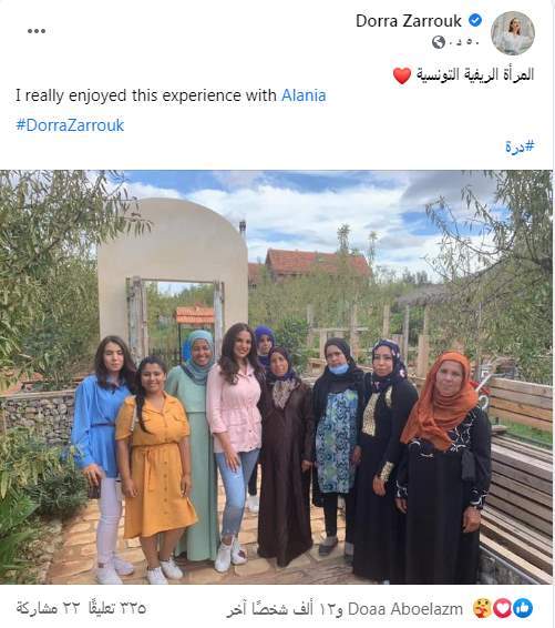 وظهرت درة في الصورة رفقة سيدات ريفيات تونسيات، حيث علقت على الصورة قائلة:" المرأة الريفية التونسية.. حقيقي استمتعت بهذه التجربة".