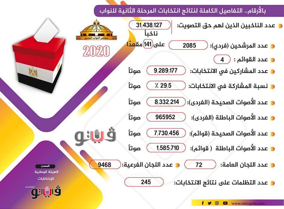 بالأرقام.. التفاصيل الكاملة لنتائج المرحلة الثانية من انتخابات النواب| إنفو جراف الأحد 15/نوفمبر/2020 - 05:17 م 11/15/2020 5:17:56 PM التفاصيل الكاملة لنتائج المرحلة الثانية من انتخابات النواب شارك طباعة 18 حجم الخط شارك طباعة مجلس النواب انتخابات النواب مجلس النواب 2020 انتخابات النواب 2020