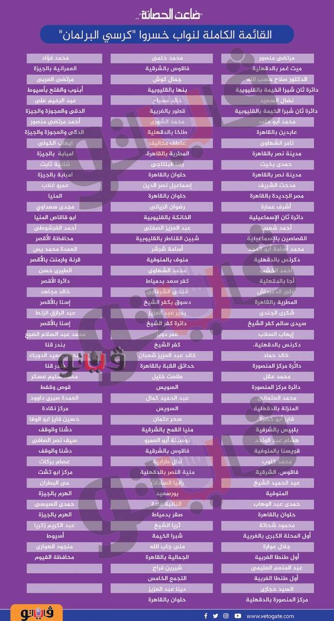 ضاعت الحصانة.. القائمة الكاملة لنواب خسروا "كرسي البرلمان"| إنفو جراف الأحد 15/نوفمبر/2020 - 06:34 م 11/15/2020 6:34:35 PM ضاعت الحصانة !! شارك طباعة 18 حجم الخط شارك طباعة انتخابات النواب مجلس النواب 2020 انتخابات النواب 2020