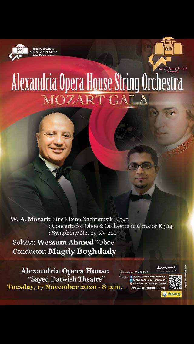 يتضمن برنامج الحفل أشهر المؤلفات العالمية والأعمال الكلاسيكية للمؤلف الموسيقى النمساوى "موتسارت"، بالإضافة إلى تقديم السيمفونية رقم ٢٩.