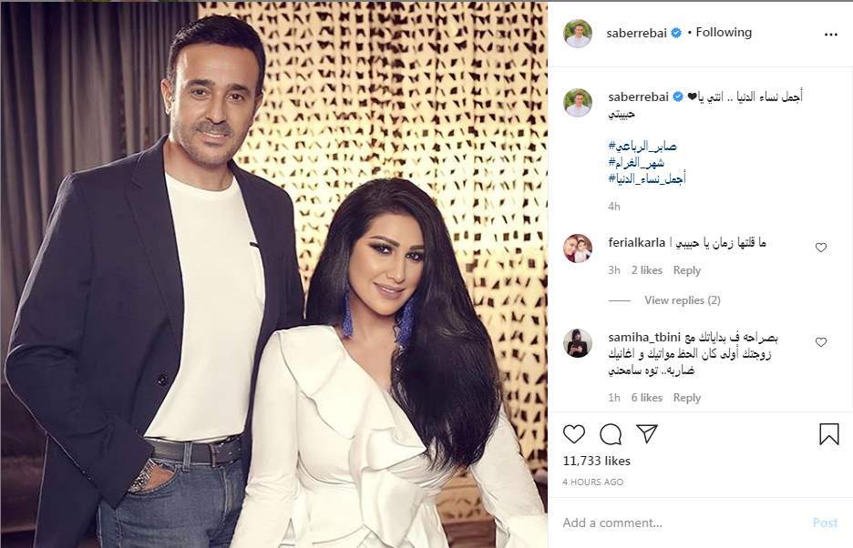 وعلق صابر الرباعي على الصورة قائلا: "أجمل نساء الدنيا.. أنت يا حبيبتي".