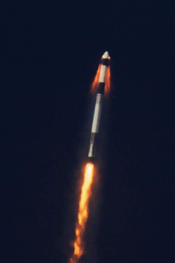 انطلقت مركبة سبيس إكس والتي تحمل اسم "كرو دراجون" عن طريق صاروخ "فالكون 9"، في الساعة 7:27 مساء (بالتوقيت شرق الولايات المتحدة) من مركز كينيدي للفضاء التابع لناسا في كيب كانافيرال بولاية فلوريدا، وفقا لوكالة "أسوشيتد برس".