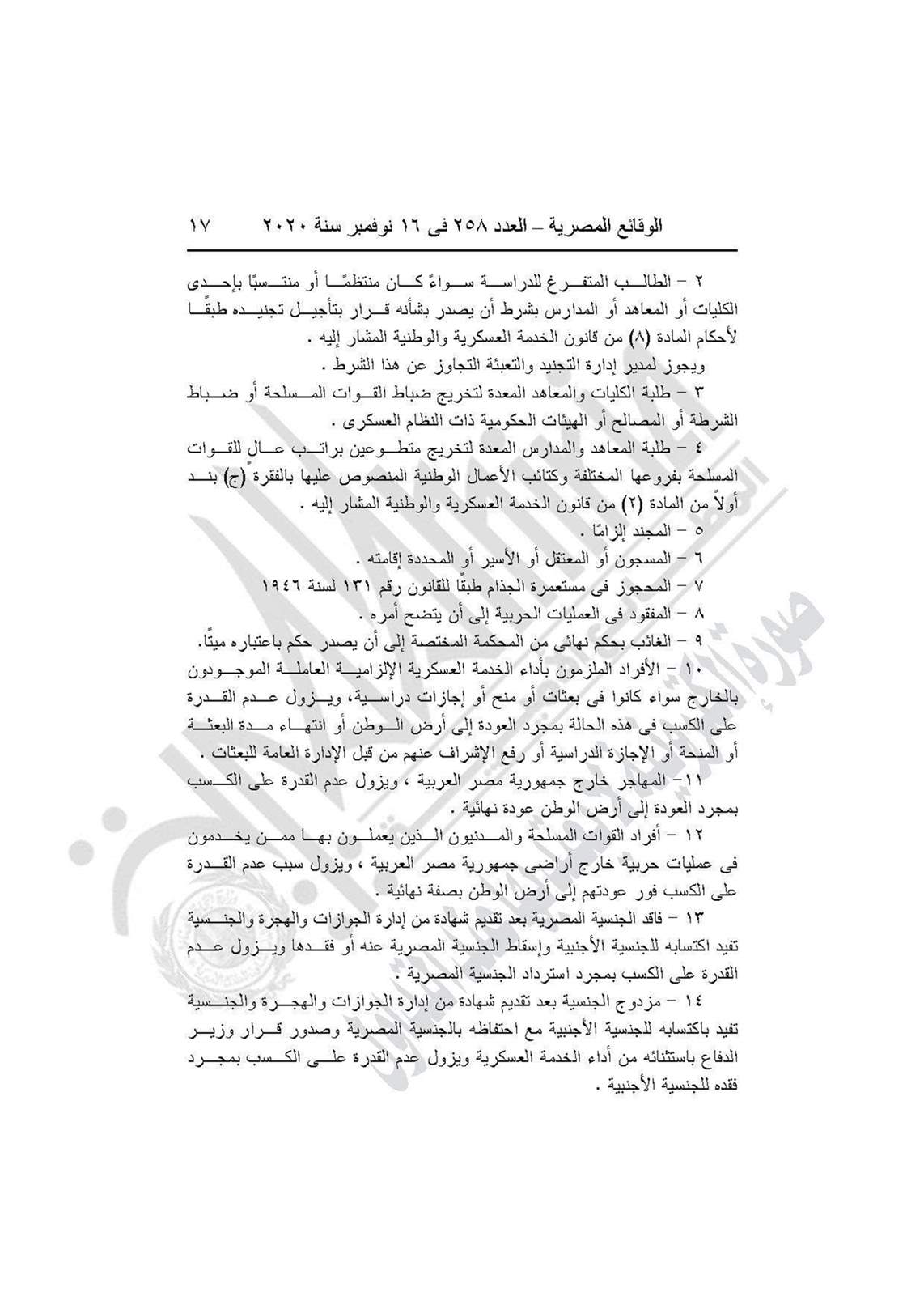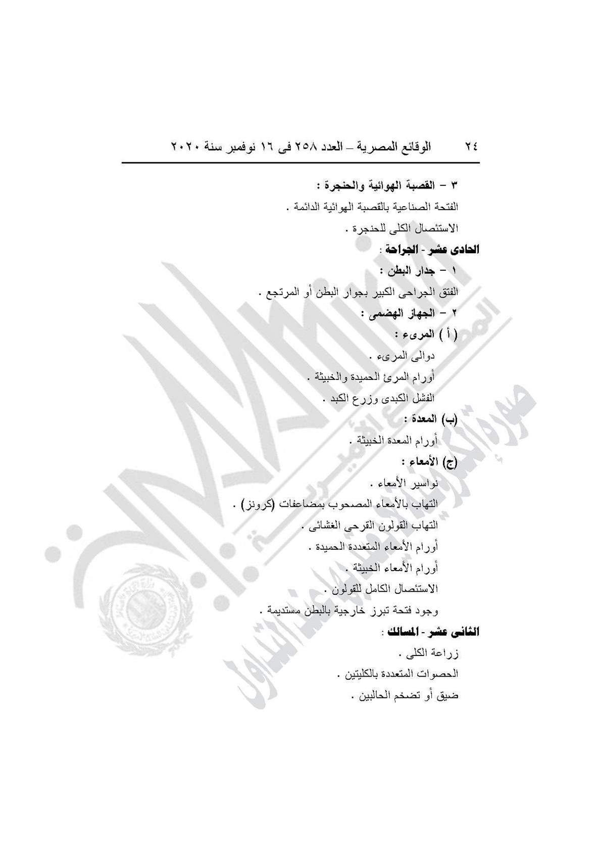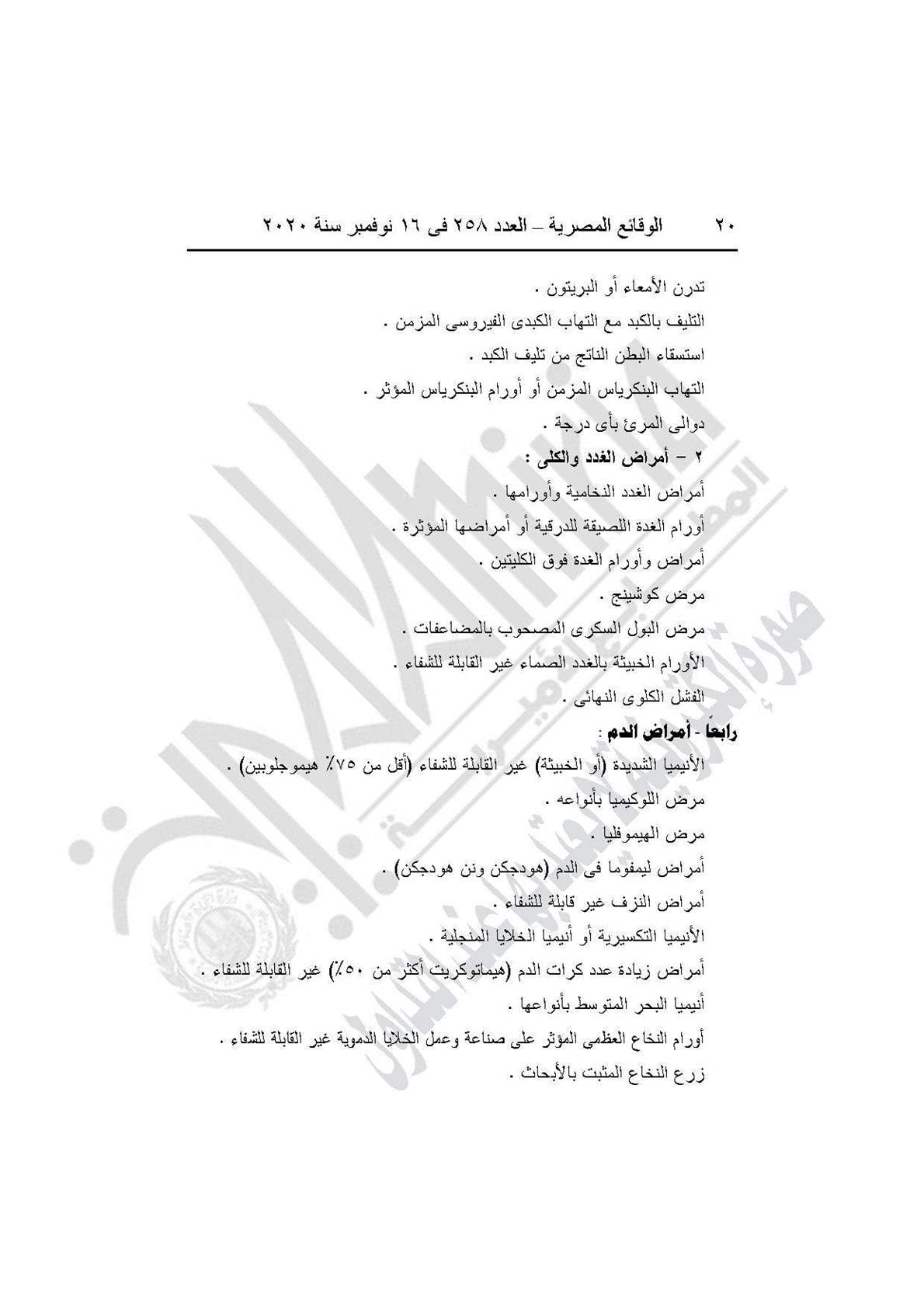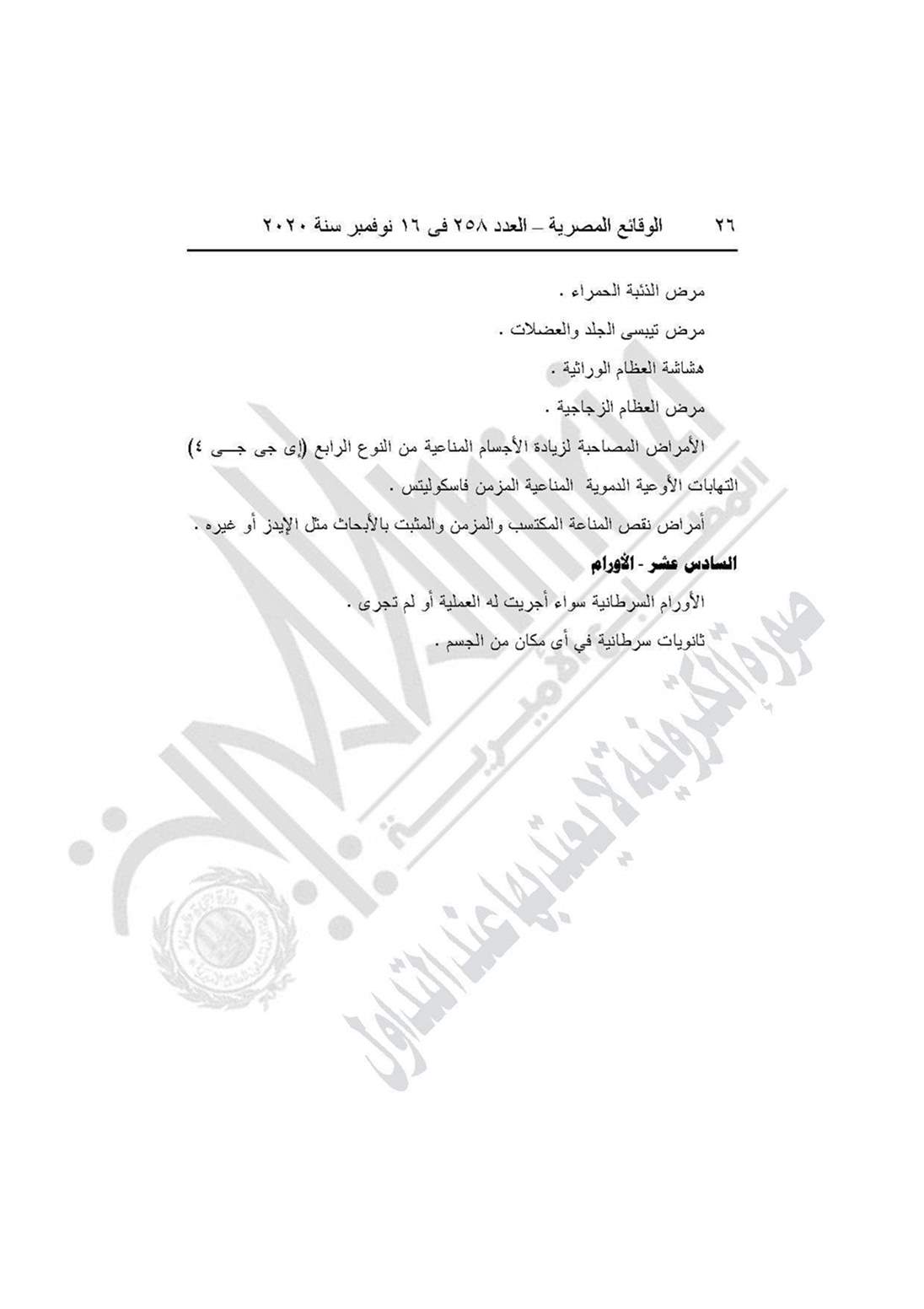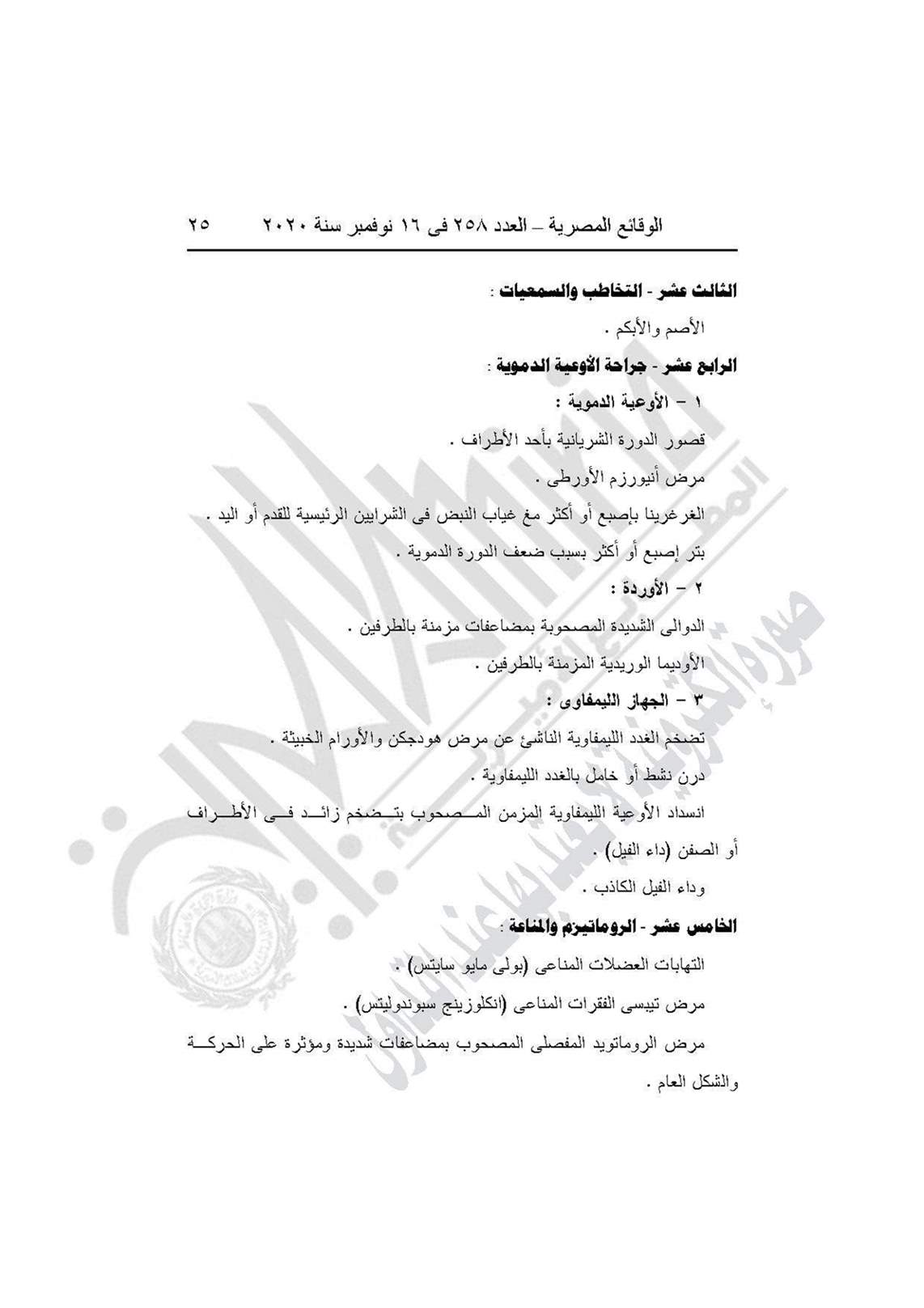 نشرت جريدة الوقائع المصرية في عددها رقم 258، الصادر في 16 نوفمبر 2020، قرار وزارة الدفاع والإنتاج الحربي رقم 196 لسنة 2020، بشأن حالات عدم القدرة على الكسب النهائي والمؤقت.