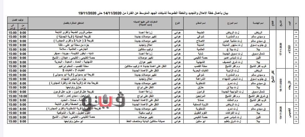 وتتضمن أعمال الصيانة زرع أعمدة وشد أسلاك وتركيب كابلات جديدة وتغيير فارغة كشك وسلسة رفع قدرات وزرع أعمدة متوسطة.