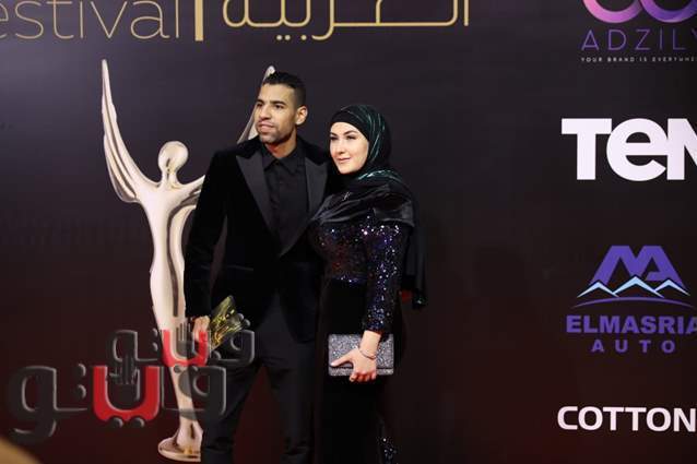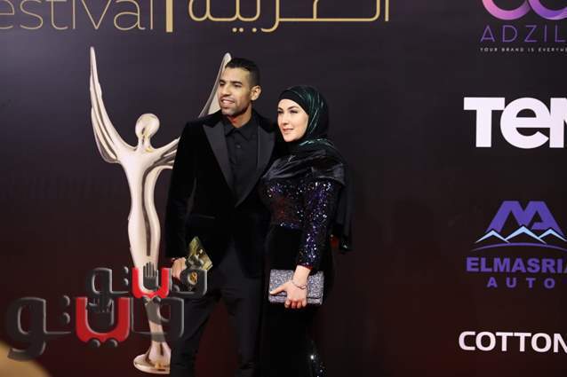 مؤمن زكريا وزوجته يخطفان الأنظار في حفل مهرجان الفضائيات | صور