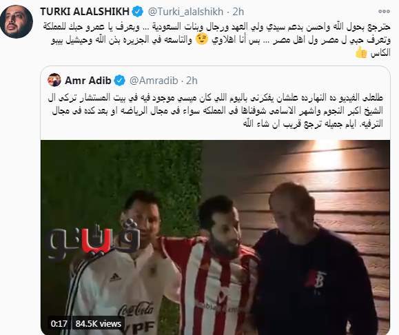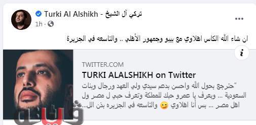 وجه المستشار تركي آل الشيخ رسالة للإعلامي عمرو أديب، وأعلن عن أمنيته في فوز النادي الأهلي ببطولة أفريقيا.