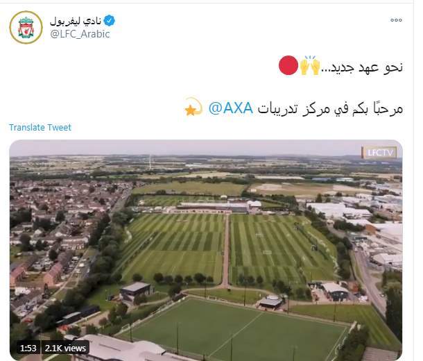 وبث ليفربول فيديو للمركز الجديد قائلًا: "نحو عهد جديد... مرحبًا بكم في مركز تدريبات @AXA"