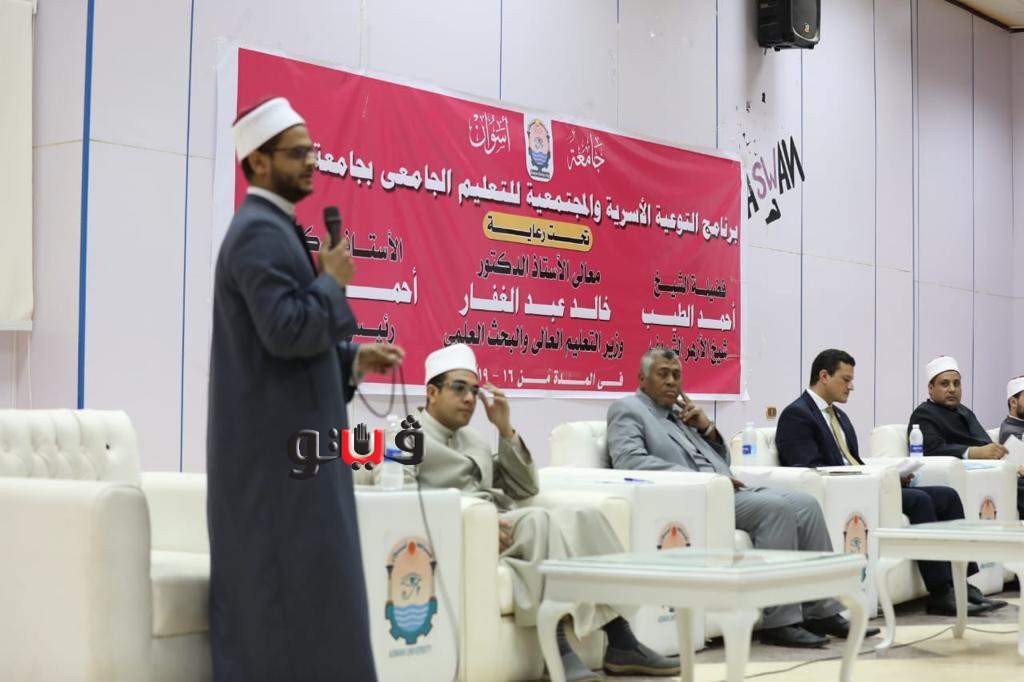 واصل أعضاء مركز الأزهر العالمي للفتوى الإلكترونية، اليوم الثلاثاء، فعاليات اليوم الثاني من برنامج التوعية الأسرية والمجتمعية المقام "بجامعة أسوان"، تحت رعاية فضيلة الإمام الأكبر الدكتور أحمد الطيب، شيخ الأزهر الشريف، والدكتور خالد عبد الغفار، وزير التعليم العالي والبحث العلمي.
