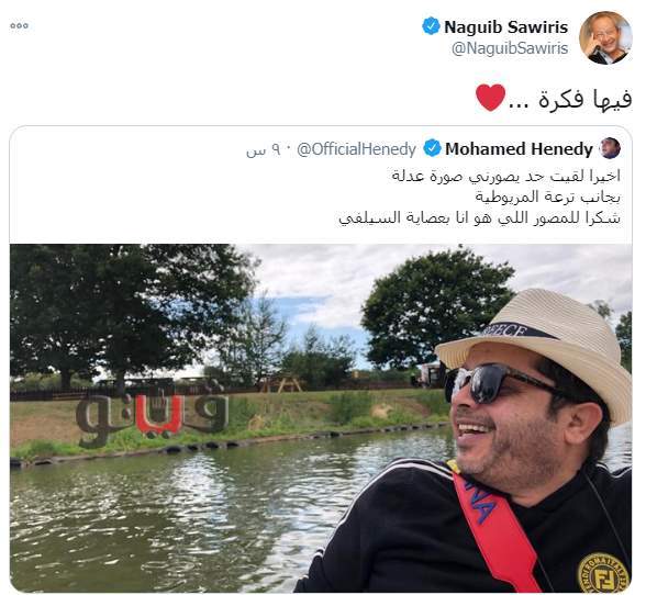 وقال "ساويرس" معلقًا على صورة "هنيدي": "فيها فكرة".