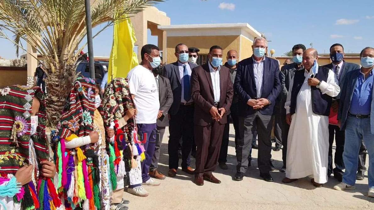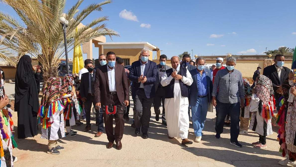واستقبل كورال فتيات مدينة سيوة، وزير الزراعة ورفقته اللواء خالد شعيب محافظ مطروح، والوفد المرافق لهما بحضور عمد ومشايخ وعواقل سيوة وعددا من الاجهزة التنفيذية والأمنية بالواحة.