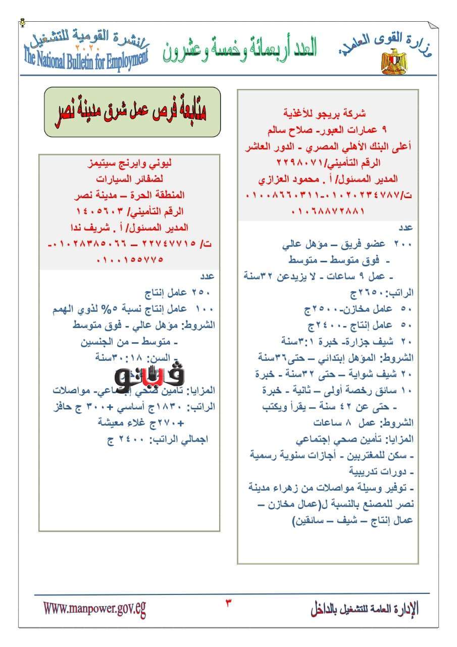 وفيما يلي تفاصيل فرص العمل بأسماء الشركات والعناوين والتليفونات وشروط شغل الوظيفة والمرتب: