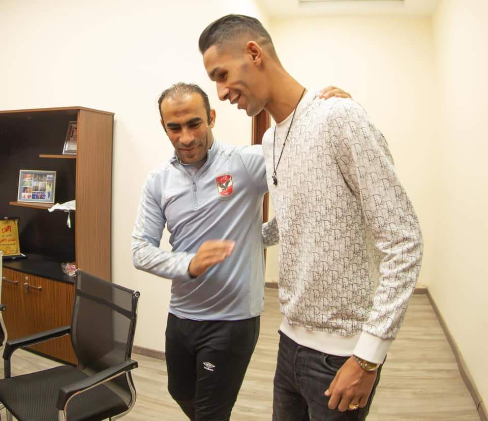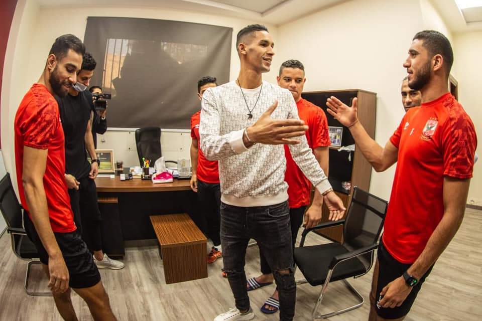 وحرص سيد عبد الحفيظ مدير الكرة بالنادي الأهلي عل استقبال اللاعب بمكتبه والترحيب به وبدوره اللاعب قام بمصافحة جميع اللاعبين والتعرف عليهم.