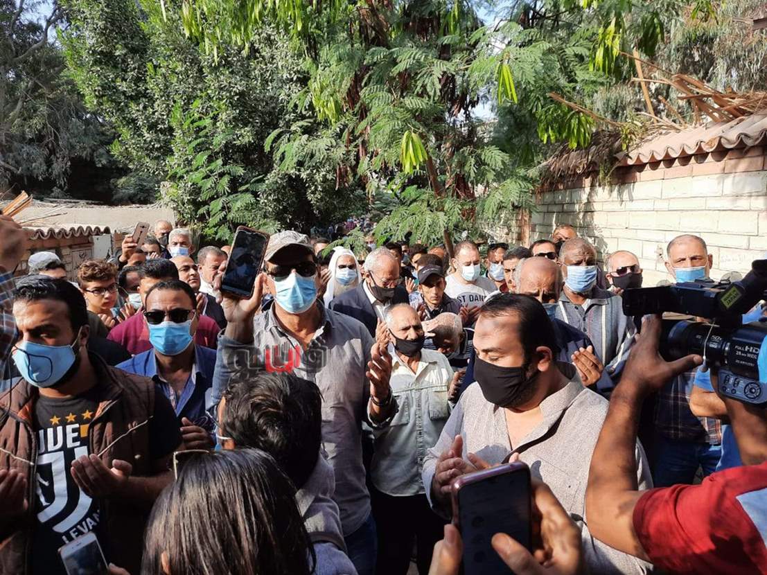 وجاء ذلك وسط حضور كبير من محبيه وأقاربه والذين أجهشوا بالبكاء عند رؤية نعش الفنان الراحل أمامهم ووسط غياب تام للإجراءات الاحترازية حيث تم وضع الجثمان داخل كفن عادي رغم أنه مصاب بفيروس كورونا فيما لم يلتزم المصلون خلال صلاة الجنازة والتي تمت داخل المقابر بمسافات التباعد الاجتماعي.