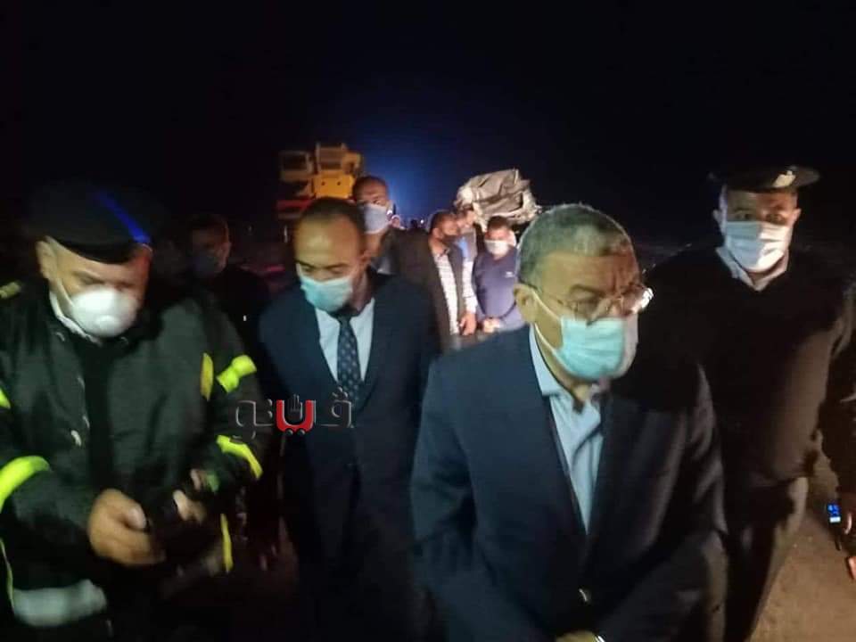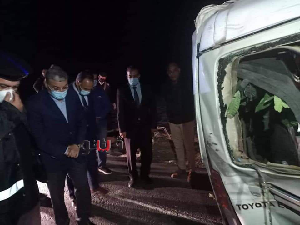 وانتقل اللواء أسامة القاضي محافظ المنيا لتفقد موقع الحادث بالقرب من وصلة بني حسن التي تربط الطريق الصحراوي الشرقي القديم بطريق الجيش، وذلك بحضور الدكتور محمد محمود أبو زيد نائب المحافظ، والعقيد محمد صلاح رئيس مدينة المنيا، والعميد أسامة غريب مدير المرور.