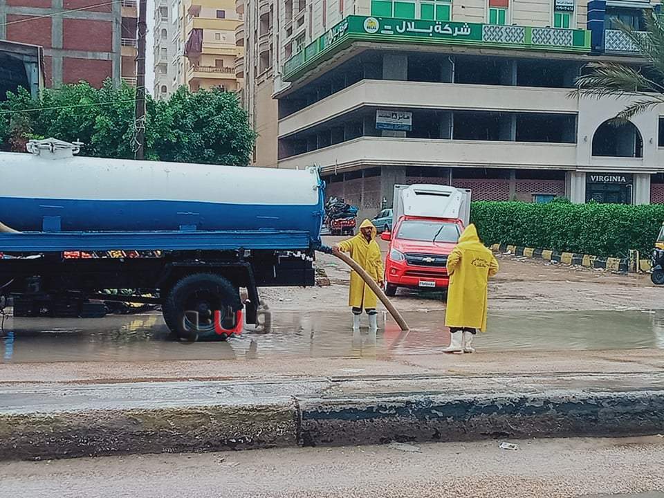 حيث اخذ اهالى المنطقة فى وضع الالواح الخشبية والاحجار الكبرى لعبور الارصفة عقب ارتفاع منسوب مياة الامطار وتواجد مسئولى المحافظة وهئية الصرف الصحى والدفع بسيارات لشفط المياة وتسير الحركة المرورية امام السائقين والمارة بالمناطق