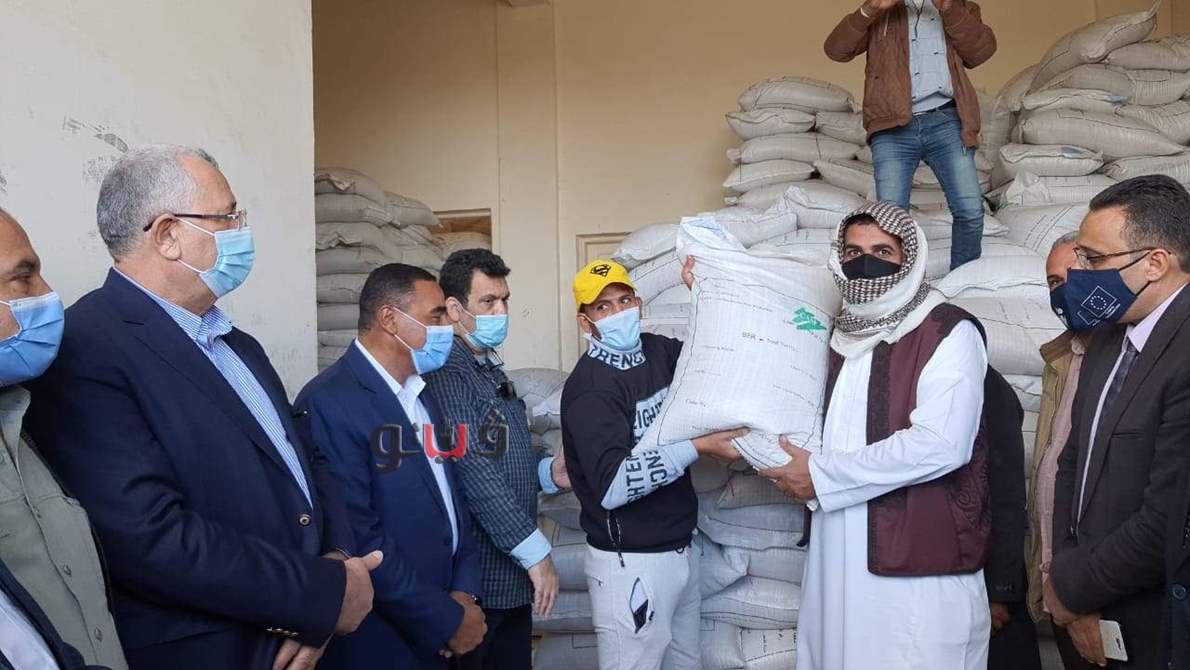 وزع السيد القصير ، وزير الزراعة، تقاوي الشعير والقمح علي مزارعي مطروح.