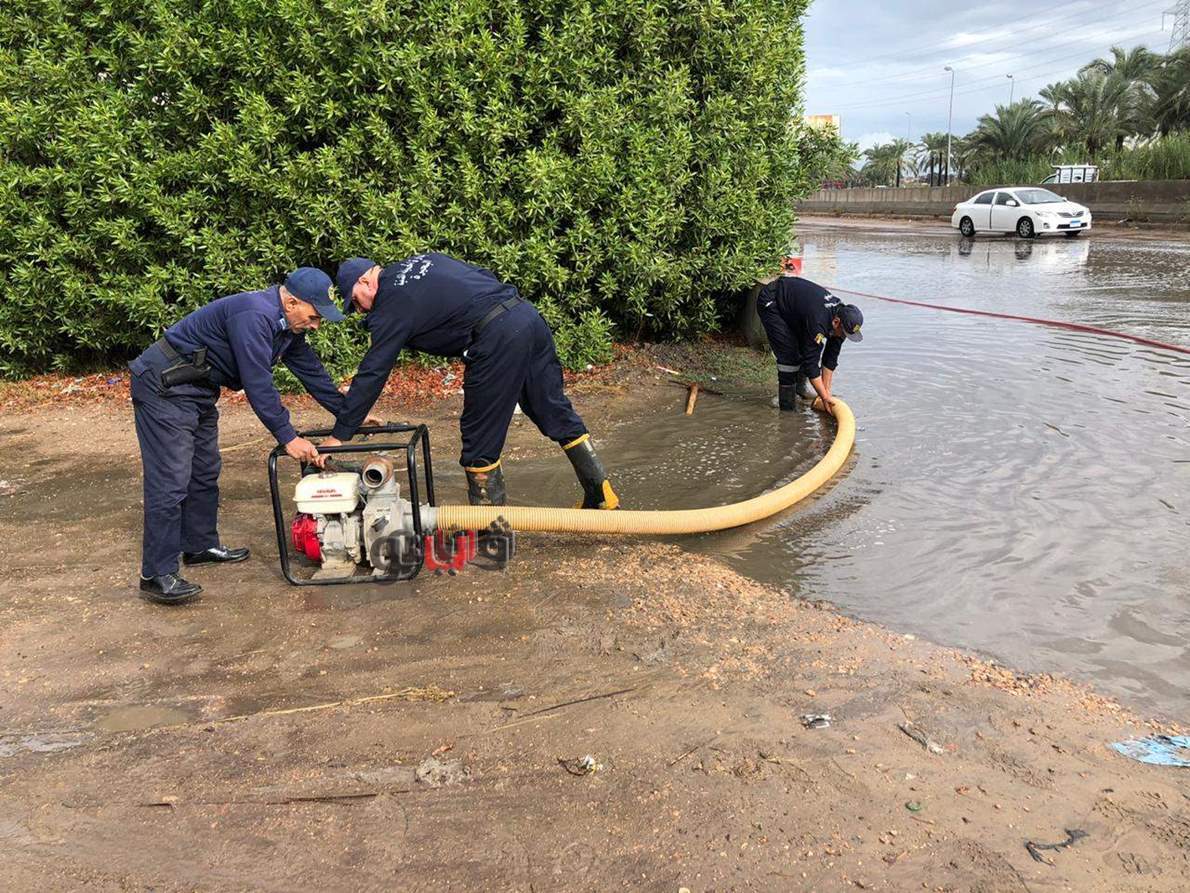 ووضع أهالى المنطقة الألواح الخشبية والأحجار الكبرى لعبور الأرصفة عقب ارتفاع منسوب مياه الأمطار وتواجد مسئولو المحافظة وهيئة الصرف الصحى والدفع بسيارات لشفط المياه وتسيير الحركة المرورية أمام السائقين والمارة بالمناطق.